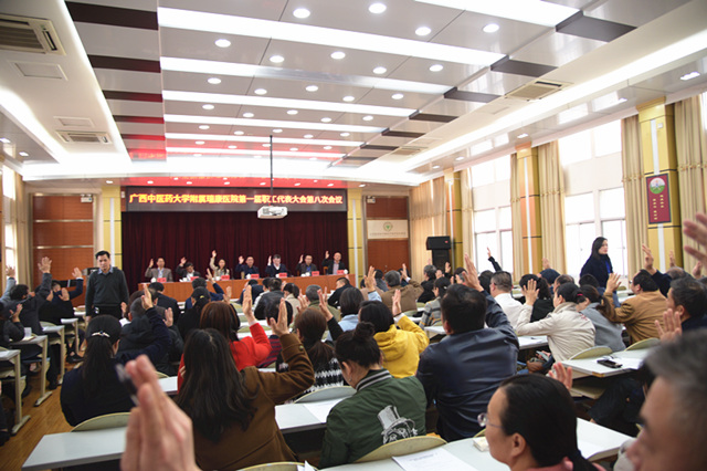 12月11日下午,我院第一届职工代表大会第八次全体会议在医院B座10楼教室举行。会议的主要任务是审议建设凤岭南医院情况说明议案、购置一台CT模拟定位机情况说明议案及医院2020年预算编制情况说明议案。此次会议,包括医院院长唐友明,党委书记高宏君,党委副书记、副院长、工会主席陈日兰,副院长韦思尊,纪委书记黄建民,副院长陈锋、宋策在内的92名职工代表出席,超过了应到会代表的三分之二,符合规定人数。大会还邀请了非正式代表的职能部门负责人,临床医技科室主任、护士长,退休职工代表列席会议。会议由党委书记高宏君主持。