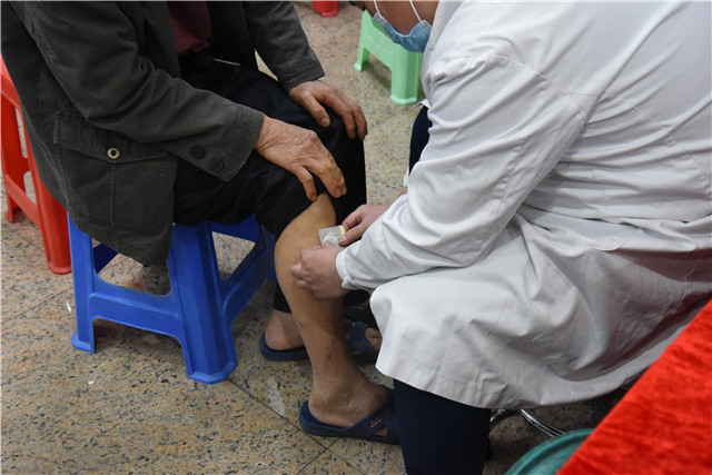 唐友明在致辞中表示,目前国家高度重视中医药事业的发展,习近平总书记指出:“充分发挥中医药防病治病的独特优势和作用,为建设健康中国,实现中华民族伟大复兴的中国梦贡献力量。”我院中医药历史积淀丰厚,在应用传统疗法治疗疾病方面有着悠久的历史和丰富的经验,希望通过此次“三九贴”义诊活动,用中医药独特的防病治病方法,为广大人民群众送去健康。
