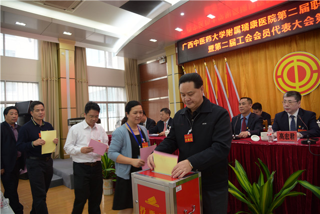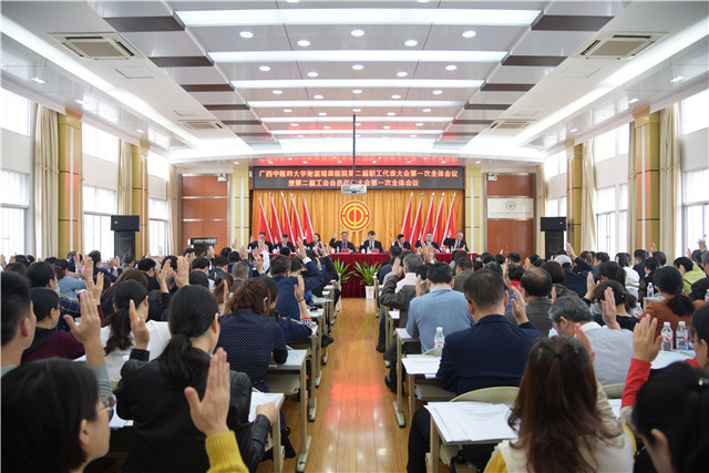 下午17时,大会第二次全体会议召开。与会代表举手表决通过了唐友明代表医院所作的医院工作报告。大会还书面审议和通过了医院财务工作报告、工会工作报告、工会经费审查报告和医院章程及工会有关规章制度。