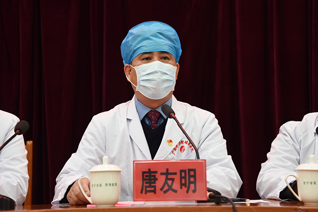 唐友明就全院下一阶段的疫情防控工作提出三点要求:一是统一思想,提高站位,坚定打赢疫情防控阻击战的信心和决心;二是突出重点,落实措施,统筹做好各项疫情防控工作;三是合理安排,科学防治,保护好医务人员自身安全。唐友明表示,乌云终将散去,天空必定晴朗。坚强的领导、坚定的意志、坚韧的毅力,是我们战胜严峻考验的强大力量。只要坚定信心、同舟共济、科学防治、精准施策,坚决把党中央关于疫情防控决策部署落到实处,我们就一定能打赢疫情防控阻击战!