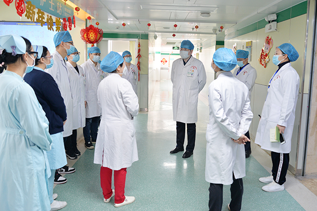 1月31日,大年初七,是庚子鼠年春节假期后我院第一个正式工作日。假期期间,医院高度重视、职工坚守岗位、在严格要求和周密部署下,我院新型冠状病毒感染的肺炎疫情防控工作井然有序。一大早,医院院长唐友明,党委书记高宏君,副院长庞刚、韦思尊,纪委书记黄建民,副院长陈锋、宋策带领相关行政职能科室负责人带着新春祝福来到临床一线,亲切慰问开始新一年繁忙工作的医护人员。