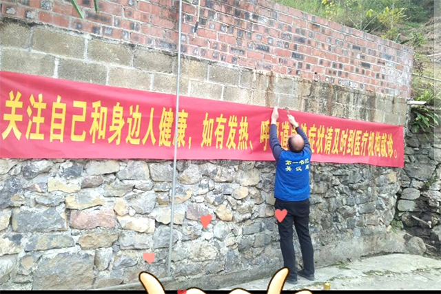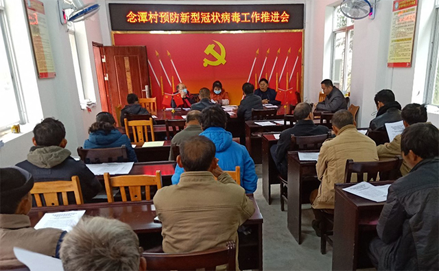 按照乡党委的工作部署,为做好念潭村的疫情防控工作,在年前23日已经召开念潭村预防新型冠状病毒感染的肺炎部署会的情况下,吴汉周于1月26日组织村委召开再部署会,1月28日召开推进会,1月30日召开专题研究会。制定念潭村应对新型冠状病毒感染的肺炎疫情网格化管理处置联系表,全体村干部入户进行细致排查。在入村念潭大洞口设岗,禁止外来人员和车辆入村。同时通过张贴宣传标语、悬挂横幅、发放致全县人民群众的一封信和致全县广大党员的一封信,利用广播、移动音响、移动喇叭等形式加大宣传力度。