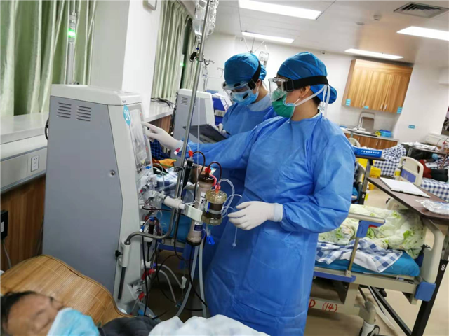 2019-nCoV新型冠状病毒的突袭,让医护人员来不及吃上年夜饭,同时间赛跑,与病魔较量。全国号召不外出、多隔离的情况下,有这样一个科室,无论春夏秋冬、国庆还是春节假期,她们从不曾停歇。血透全体医护人员必须逆行而上,始终坚守在血液透析中心的工作岗位上,守护透析患者的安全。