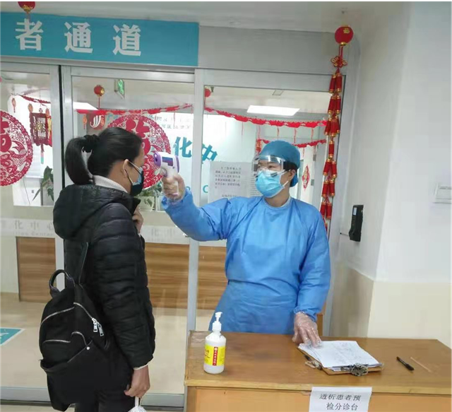 1月21日开始,中心全面对透析患者进行排查,尤其调查患者有无与疫区人员接触史,并开始严格管理透析中心,要求患者每天在家里自行测量体温,进入中心透析时全部测量体温并记录。对疑似患者全部送到发热门诊进行筛选。同时,凡是疑似患者或确诊透析患者均由定点医院收治隔离,进行专门床旁透析。反复强调中心透析患者无特殊情况不能更换透析单元。对于仅需要隔离的透析患者,中心通过协调,专门准备了适合隔离的单元,对疫情防控起了重要作用。