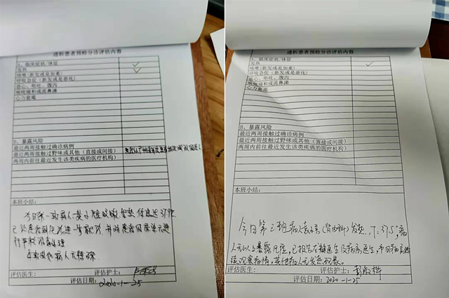 为患者测量体温并记录、进行评估筛查同时开展患者防护教育,核实患者相关情况。
