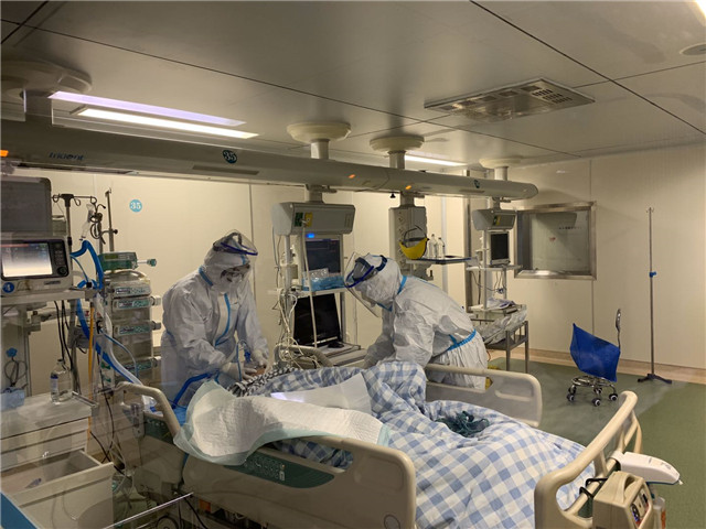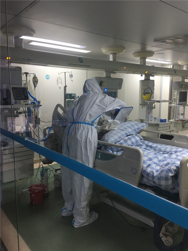 2月13日,重症医学科收治了一名疑似新型冠状病毒感染的肺炎患者,患者 1月26日与家属坐私家车回宾阳县家庭聚餐,2月10日入住我院肿瘤二区,2月11日出现发热、乏力、呼吸困难等症状,肺部CT显示磨玻璃样改变。科室通知医务部后,医院立即启动院内防疫专家组会诊,高度疑似新型冠状病毒肺炎,由于患者目前病情危重,不宜转入市级定点救治医院治疗,需要立即转入重症医学科二区负压隔离病房进行抢救。 疫情就是命令,防控就是责任。科主任第一时间统筹安排,制定方案,部署落实。患者转入后升级个人防护,穿戴隔离衣,护目镜及一次性面屏,立即进行气管插管,呼吸机辅助通气等抢救,在重症医学科医护人员精心治疗护理下,患者生命征相对平稳,经连续两次病毒核酸检测均呈阴性,2月14日患者解除了隔离病例有关工作程序。