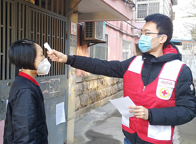 医学生虽无法像医务人员一样在最前线,但依然站了出来——他们身穿红马甲,手带红袖章,奔波在重点路段、村口、社区。口罩遮去了大半面容,用责任与担任默默撰写一个个“守望相助”的故事。