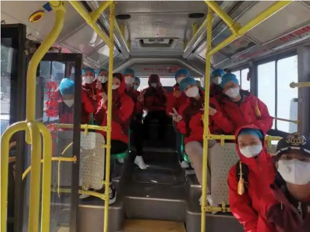 今天我们队是10点到16点的班,早上8点坐公车出发。在车上,我已经感受到春寒料峭,昨夜公车饱受暴雨的摧残,车里略显狼藉,处处弥漫着消毒水的味道,车厢和座椅有点湿,但和武汉这座伟大城市正遭受的磨难相比,这点不适又这算得了什么呢?天气是冷的,我们的心是热的,我们满怀信心“杀”向我们的“战场”,打下这场必胜的战“疫”。