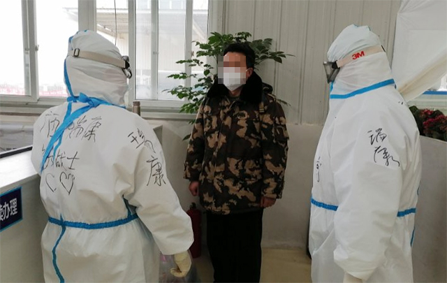 我分管的是J病区,作为一名男性护理工作者,男同胞们总是特别容易有共同语言,有些男病人不好意思和女护士说话,我就经常和他们聊天,主动一个握手,一个拥抱,敞开心扉,给他们加油鼓劲。在我们医护人员的带领下,很快我们就和病人们打成了一片,大家的积极性都很高,病区里的几个老党员也经常参与进来,帮助我们分发午餐,协助保持病区的清洁。但今天病区的氛围格外热烈,因为我们迎来了一个振奋人心的好消息,我分管的J病区的13床患者,经过层层严格的医学筛查和严密的隔离后,达到了出院标准,终于可以在今天出院了!