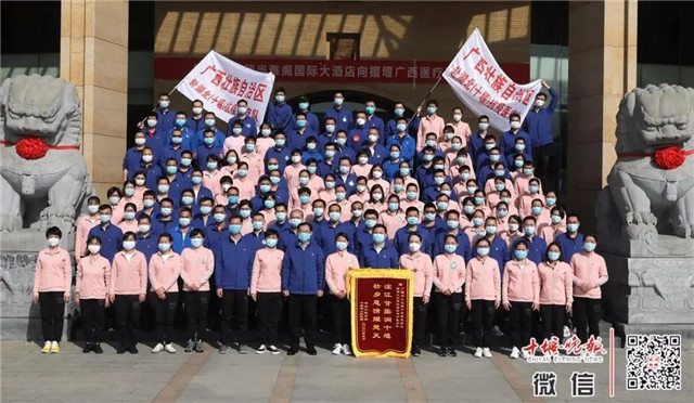在广西援堰医疗队员完成使命即将返程之际,3月20日,十堰市委、市政府举行欢送仪式,十堰市委书记张维国等市领导为广西援堰勇士送行,并为医疗队员颁发荣誉证书,授予十堰市“荣誉市民”。