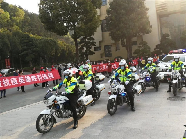车队的正前方,交警一路开道送行。十堰公安民警整装列队,以最高规格、最深敬意,欢送英雄们回家!
