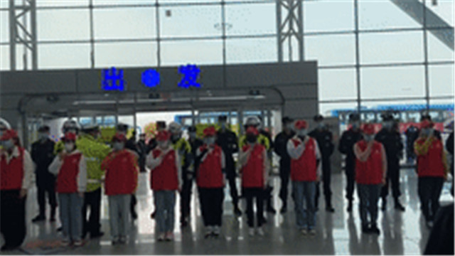 志愿者们还暖心的准备了手势舞,欢送来自广西的英雄。