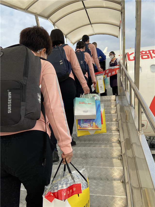 工作人员给队员送上纪念登机牌,队员们将这份珍贵的回忆留存于心。