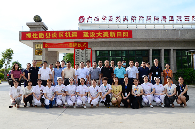 医院院长唐友明,副院长庞刚、宋策,广西中西医结合研究所所长龙学明,田阳区卫生健康局党组成员、计生协会副会长农雪莲,田阳院区领导龙驹、甘照儒、陆秀伟、陈威、张巍出席揭牌仪式并共同揭牌。院区全体中层干部、职工代表参加揭牌仪式。