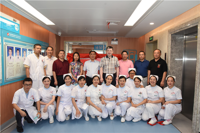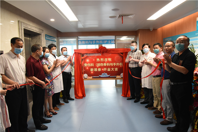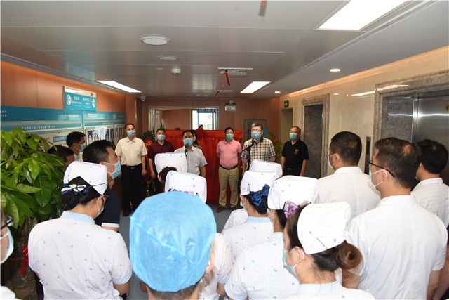 5月11日上午,我院在B座16楼举行泌尿外科三区(移植病区)、创伤骨科与手外科重新装修后开业仪式。我院院长唐友明,党委书记高宏君,党委副书记、副院长陈日兰,副院长庞刚、韦思尊,纪委书记黄建民,副院长陈锋、宋策以及医院各临床、医技、行政职能部门中层干部代表出席开业仪式。高宏君主持开业仪式。