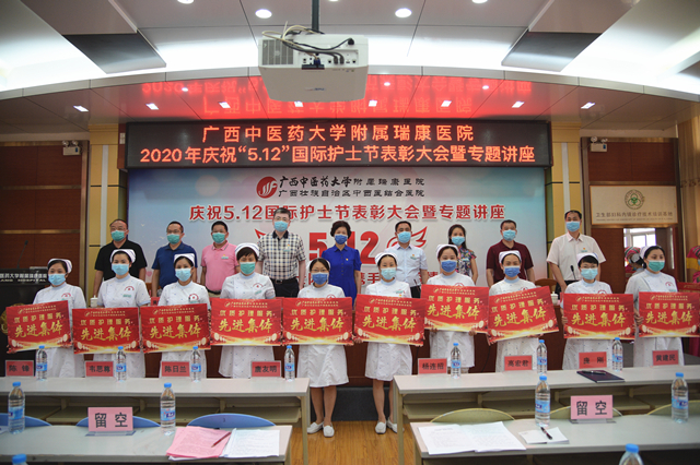 陈日兰宣读表彰文件,对医院10个2019年度优质护理服务先进集体、18名优秀护士长、20名先进个人、12名三十年护龄人员以及2019年度第三届教学查房竞赛奖进行表彰,号召全院同志向榜样学习,忠于职守为患者服务。广西护理学会理事长杨连招及医院领导为受表彰的集体和个人进行颁奖。