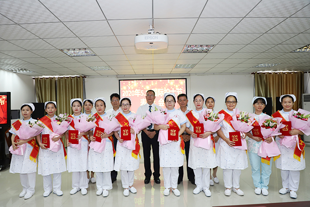5月12日上午,院区在二楼会议室召开2020年“5.12”国际护士节表彰大会。院区领导梁春才、林宗汉、黄建东、护理部主任王艳红出席大会。部分职能、临床、医技科室负责人,护士代表及获奖人员等约100人参加大会。大会对在“2020年护士礼仪展示”比赛中获奖的团体和2019年度评选出的“十佳护士”进行了表彰,并颁发了荣誉证书。