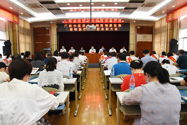 5月13日下午,我院在B座十楼教室隆重召开广西中医药大学附属瑞康医院援鄂医疗队凯旋表彰大会。医院党委书记高宏君,院长唐友明,党委副书记、副院长陈日兰,副院长庞刚,纪委书记黄建民,副院长陈锋、宋策出席大会,医院援鄂医疗队全体队员及各部门(科室)负责人参加大会。陈日兰主持大会。