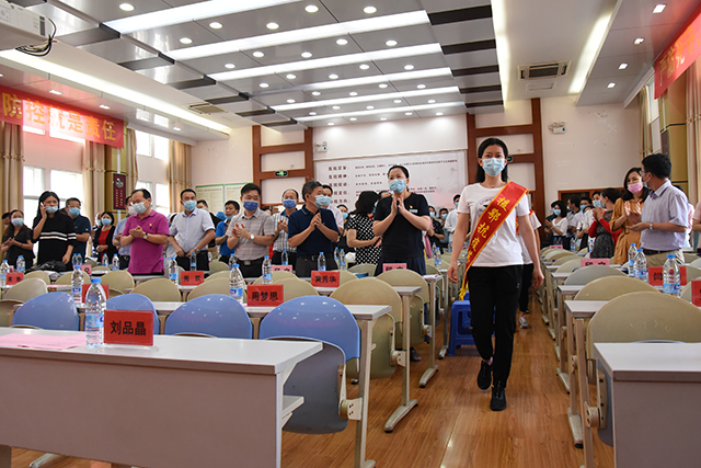 大会伊始,院领导及各部门(科室)负责人全体起立鼓掌,向列队入场的我院22名援鄂医疗队队员致以最崇高的敬意。