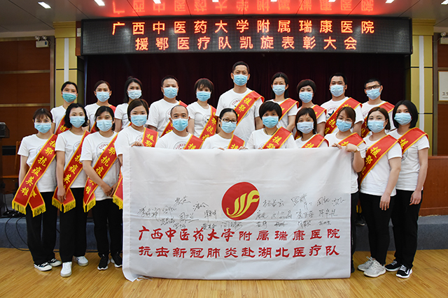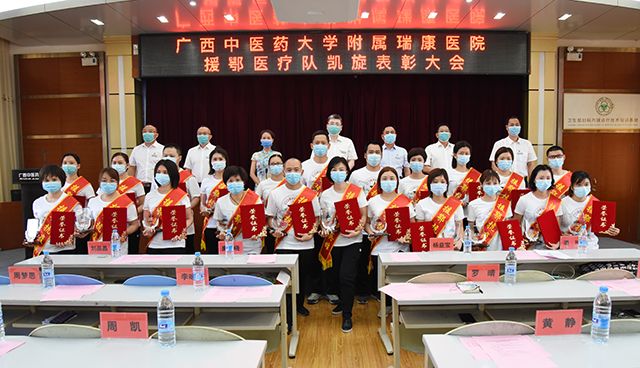 唐友明指出,我院从千余名主动请缨的医务人员中挑选出22名勇士驰援湖北抗疫一线,他们舍小家顾大家,义无反顾,冒着随时被感染的巨大风险,与来自全国各省医务队协同作战。他们克服重重困难,凭借过硬的本领和精湛的技术,精准施策,科学救治,大力推广使用中医中药,中西医协同治疗收到显著疗效。他们用实际行动践行了社会主义核心价值观,充分展示了当代医务工作者“大医精诚”和“敬佑生命、救死扶伤、甘于奉献、大爱无疆”的崇高职业精神,为广西医务工作者树立了良好的形象,为医院赢得了荣誉,是最美的逆行者,是新时代最可爱的人。他们对瑞康精神进行了最好诠释,勇气令我们钦佩,表现让我们骄傲,必将激励一代代瑞康人奋勇前进。