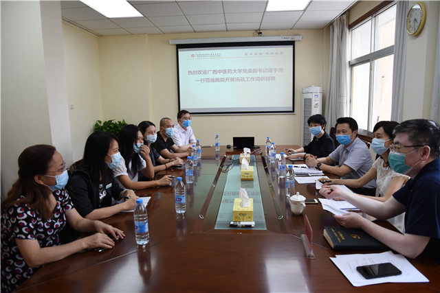 5月14日下午,广西中医药大学党委副书记庞宇舟、统战部部长姜建萍,统战部副部长邬文燕到我院开展统战工作调研座谈会,会议在B座9楼第一会议室举行。医院党委书记高宏君,院长唐友明,副院长庞刚、韦思尊,纪委书记黄建民,副院长陈锋、宋策,以及民主党派、无党派代表参加会议。