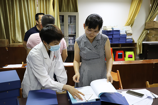 座谈会结束后,田阳院区参观交流人员分别深入党政办、医务科、护理部、骨脊柱科、感控科、检验科、药械科等科室与材料员进行对接,对照《二级中医医院评审标准实施细则(2018年版)》标准条款,进行了实地学习交流。