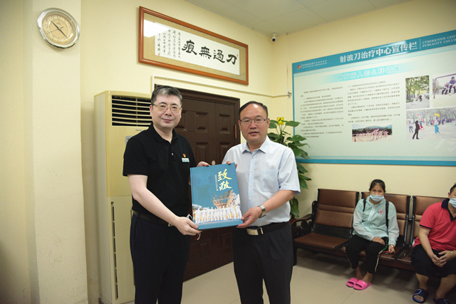 最后,高宏君代表医院向曹坤华厅长赠送了记录我院抗击新冠疫情点滴的《“致敬”——瑞康战疫记录汇编》。
