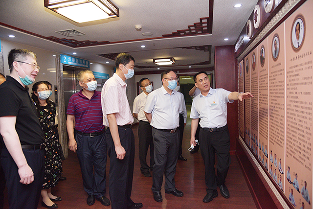 曹坤华在调研期间听取了我院院长唐友明汇报医院科研团队基本情况,分别到广西中西医结合转化医学中心、国医大师馆、陈可冀院士工作站、院史馆、治未病中心、国医堂名医馆、射波刀治疗中心等科室参观指导。曹坤华通过实地考察与交流,对我院科研氛围的营造、科技创新风貌的形成、科研成绩的取得作了充分肯定,赞扬了我院科研氛围浓厚,具有一定的科研功底及优越的科研条件。他指出,创新是引领发展的第一动力,自治区党委、政府高度重视科技创新工作,陈可冀院士工作站、广西中西医结合转化医学中心是广西科技创新的重要平台,一定要结合全区创新驱动发展战略和科技创新工作部署,主动对接产业升级优化,引才聚力,服务地方经济发展,在此同时要平衡好临床与科研的协调发展,加强人才引进与培育相结合,打造一批高水平的科研创新团队,实现“项目、平台、人才”一体化发展。当前,民生幸福、大健康产业发展和抗疫防疫都对生物医疗技术提出了新要求,医院有一支充满朝气的科研骨干团队,希望能不断拓宽院外合作渠道,承担更多责任和使命,并及时将科研成果转化应用,促进经济社会发展。同时他希望医院注意整合一些优势项目,突出重点,把科研工作做出品牌,对全区临床医院的科研工作能起到引领和带动作用。科技厅将积极支持医院,加大对医院的科研平台构建、科研团队建设、领军人才引培、项目经费支持等方面的支持力度,进一步做好服务医疗卫生发展的各项工作。