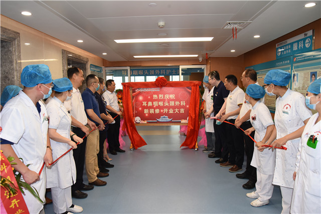 6月9日上午,我院在B座9楼举行眼科、耳鼻咽喉头颈外科重装开业仪式。医院院长唐友明,党委书记高宏君,党委副书记、副院长陈日兰,副院长、总会计师庞刚,副院长韦思尊,纪委书记黄建民,副院长陈锋、宋策出席开业仪式,眼科、耳鼻咽喉头颈外科全体科室人员以及医院各临床、行政职能部门中层干部代表参加开业仪式。高宏君主持开业仪式。