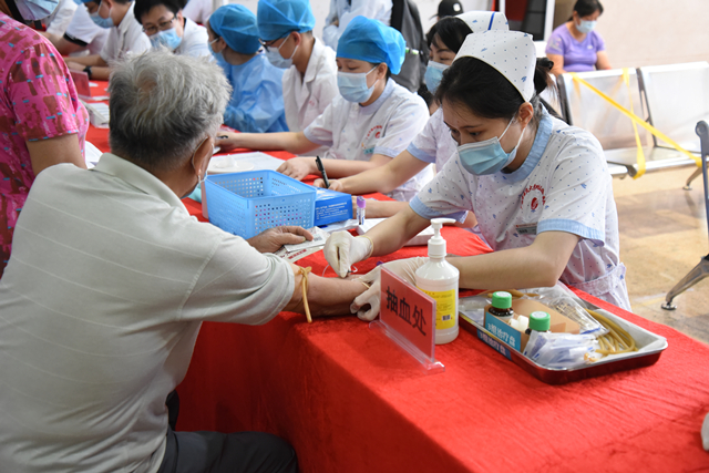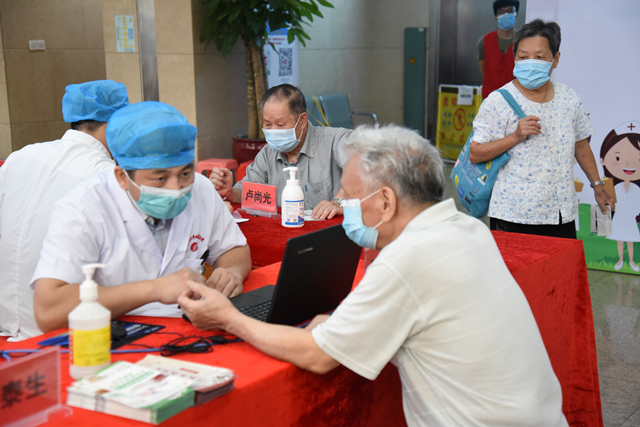 活动开始后,前来问诊的市民络绎不绝,他们在现场志愿者的引导下,有序地排队咨询健康问题,医务人员通过问诊、检查、诊断、宣教等程序为前来问诊的市民朋友答疑解忧,以实际行动为老人们送上了“父亲节”的祝福,活动一直持续到中午12点,接诊了近百名市民。