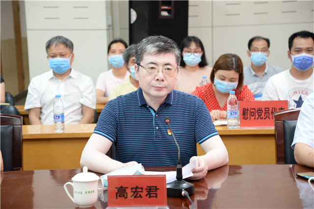 医院党委书记高宏君代表医院对庞宇舟副书记的到来表示热烈欢迎,表示此次代表学校党委前来我院慰问抗疫队员、老党员以及战斗在一线的医务工作者,让我们倍感温暖,同时也对学校一直以来对瑞康医院的关心和支持表示感谢。