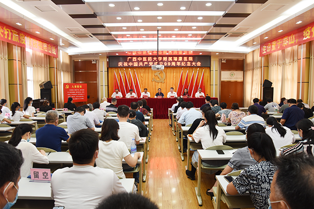 广西中医药大学党委常委、纪委书记韦雪芳出席会议并讲话,医院党委书记高宏君出席会议并讲话,医院院长唐友明主持会议,院领导陈日兰、韦思尊、黄建民、宋策出席会议。医院党委委员、纪委委员,各党(总)支部书记及支委代表,各临床、医技科室、外围点、行政职能部门中层党员干部,预备党员代表、受慰问的党员代表,各民主党派负责人和无党派人士代表列席大会。