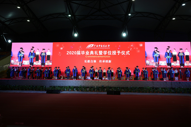 浓情六月毕业季,梦想扬帆正当时。6月28日晚上,广西中医药大学2020届毕业典礼暨学位授予仪式在仙葫校区运动场隆重举行。全体校领导、各部门、各附属单位主要负责人及全校毕业班师生共同参加了毕业典礼。我院院长唐友明,党委副书记、副院长陈日兰出席活动。