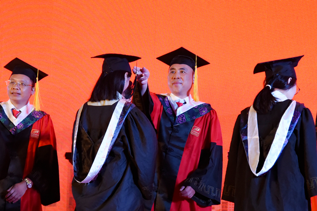 唐友明院长(右二)向毕业生行拨穗礼