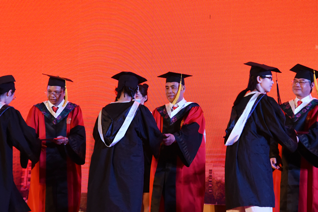 唐友明院长(中)授予毕业生学位证书