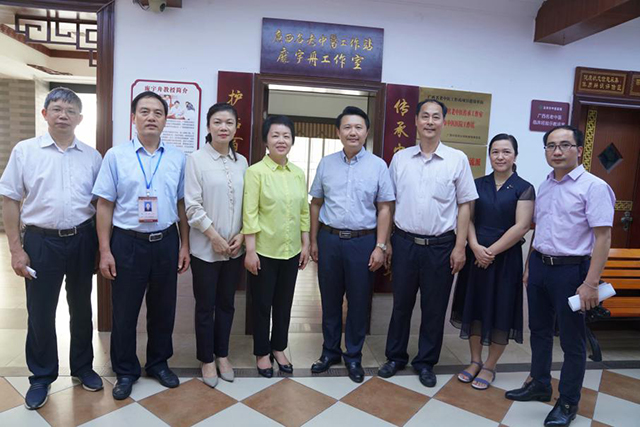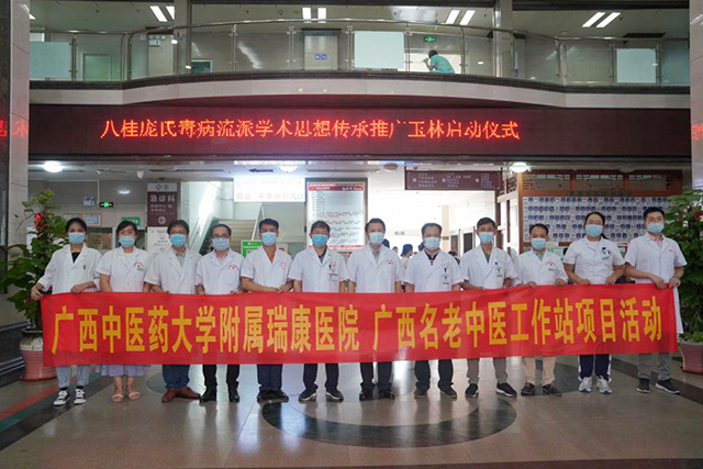 为积极响应国家“中医药事业传承创新发展”的号召,07月25日,“庞宇舟名老中医工作室”首次在玉林市中医医院正式成立,全国名老中医庞宇舟教授带领八桂庞氏毒病学术流派团队跨市传承和发扬壮医“毒病”流派的精髓。