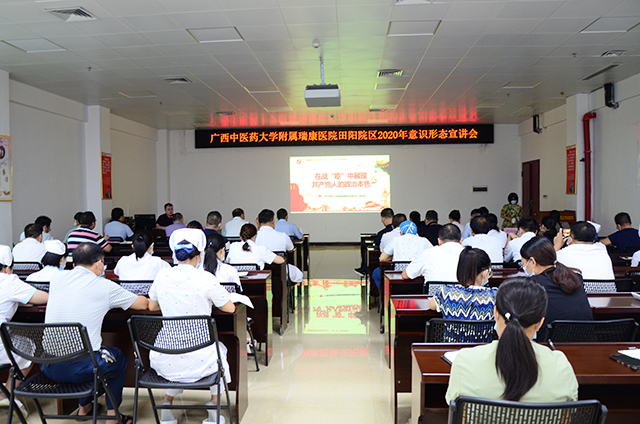 习近平总书记指出:“意识形态工作是党的一项极端重要的工作,是为国家立心,为民族立魄的工作。”为进一步加强院区意识形态工作,7月27日下午,医院党委书记高宏君在田阳院区门诊楼五楼会议室作题为《在战“疫”中展现共产党人的政治本色》的专题宣讲会。田阳院区领导、全体中层干部、党员及入党积极分子到场学习聆听。