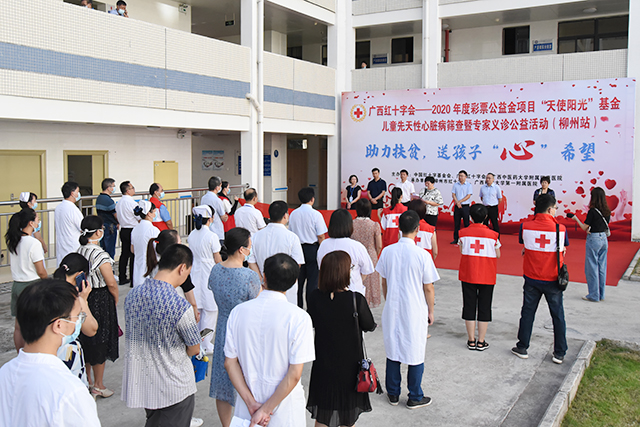 潘雪红首先代表广西红十字会感谢一直关心和支持红十字事业发展的柳州市委、市政府及柳州市各级爱心单位和部门。她指出,2020年是脱贫攻坚决战决胜之年,为响应党和政府的号召,广西红十字会凝聚社会力量,动员社会更多的资源和力量来参与做好红十字助医工程,助力全区脱贫攻坚。彩票公益金项目“天使阳光”基金儿童先天性心脏病筛查公益活动已经走进南宁、河池、贵港、钦州、北海、贺州、百色、梧州等8个市50个县,行程16000多公里,收到很好的效果。本次柳州站,专家团队除了帮助贫困家庭先心病患儿获得适当的医疗救助,引导社会各界共同关注青少年身心健康外,还会对基层医生开展培训,提高他们救治先天性心脏病的知识和能力。