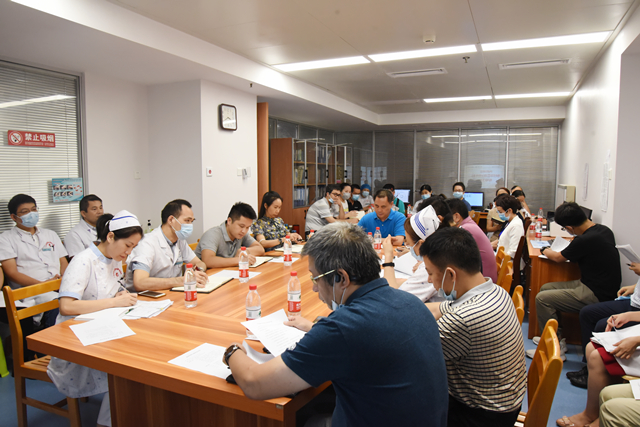 各行政职能科室负责人首先总结在查房过程中发现的亮点,提出存在的问题和不足,并就改进方式、方法与大家进行讨论。随后,泌尿外科主任梁泰生作科室工作汇报,他从科室人员构成、技术亮点、学科建设、未来发展规划等方面将科室基本情况一一作详细说明。