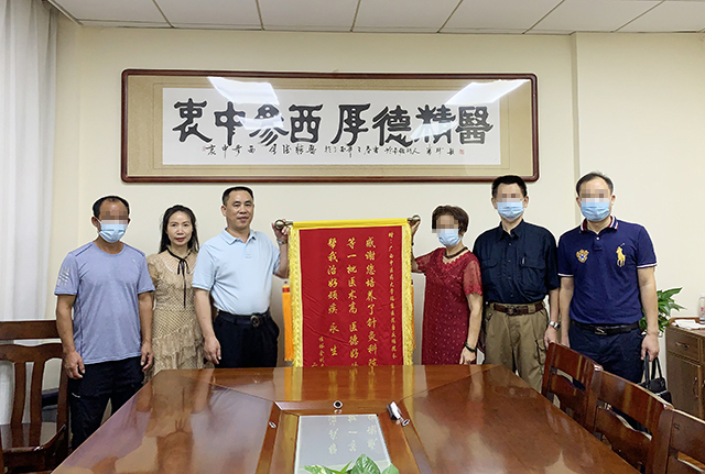 8月25日上午,王阿姨一家拿着三面鲜红的锦旗风尘仆仆地来到我院,感谢唐友明院长培养了针灸科陈芒华等一批医术高、医德好的医师帮她治好顽疾,感谢正骨推拿理疗馆唐武林医师“手到病除、百姓有望”。院长唐友明,党委副书记、副院长陈日兰热情接待王阿姨一行,对王阿姨久病初愈表示祝贺。