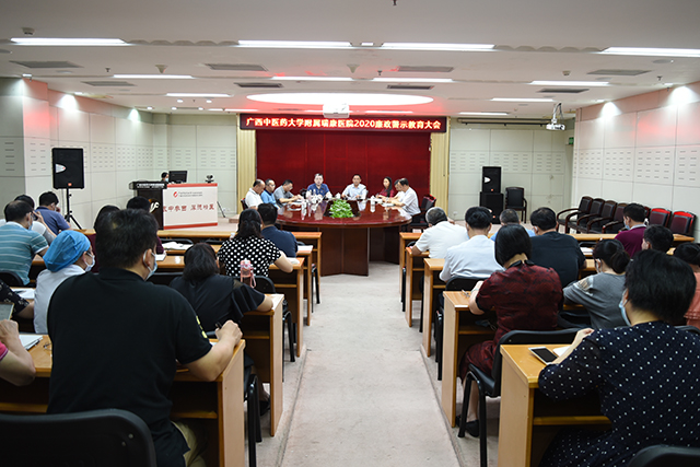 为深入贯彻落实医疗行业作风建设工作专项行动精神,8月28日下午,我院在B座23楼学术报告厅召开2020年廉政警示教育大会。医院领导高宏君、唐友明、陈日兰、庞刚、韦思尊、黄建民、陈锋、宋策出席大会,全体中层干部参加大会。