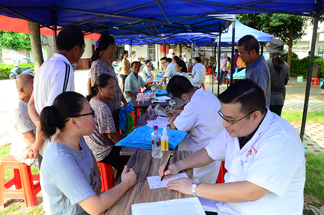 本次义诊活动由执行院长龙驹,副院长陆秀伟、陈威、张巍带队,组织了骨创伤四肢外科、骨脊柱外科、妇产科、外科、内一科、肾内科、壮医科、口腔科、治未病科等14名专家在现场为群众提供义诊服务,满足当地居民的就诊需求。