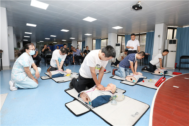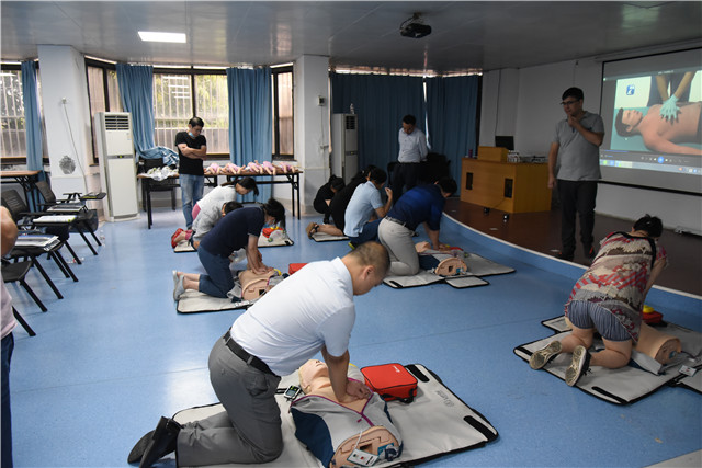 此次培训由我院医务部主任郑东林、重症医学科主任伍民生、急诊科主任欧阳国林等多位专家进行授课指导,培训严格执行AHA基础生命支持(BLS)课程标准,在观看视频的基础上,进行“互动式”“边看边练”的课程学习,培训内容主要有单人、双人施救者成人BLS,儿童、婴儿BLS,自动体外除颤器(AED)的使用,成人和儿童的窒息解除等等。