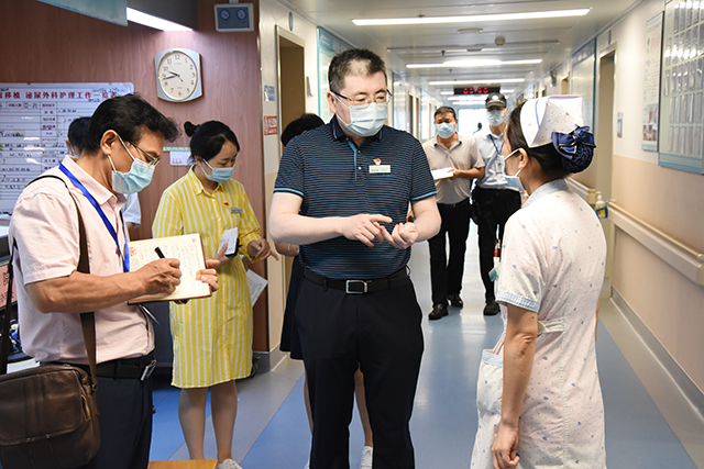 国庆、中秋双节将至,为确保全院职工及住院病友度过一个安全祥和的节日,保证医院医疗工作安全平稳运行,9月30日上午,医院领导带领相关职能部门负责人组成安全检查小组,深入医院各楼层各部门开展节前安全生产大检查。