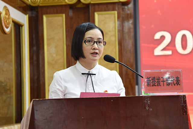 新提拔干部代表唐晓作表态