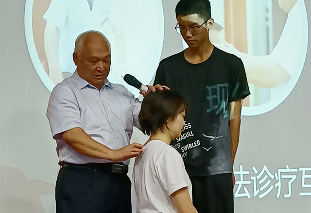 当天,一同学因左脚疼痛不能挤进人群中给安教授诊治,一路艰难的跟随安教授到图书馆前的停车场,安教授发现后主动帮助该同学在路上诊治,经过几十秒的治疗该同学的左踝疼痛基本消失。
