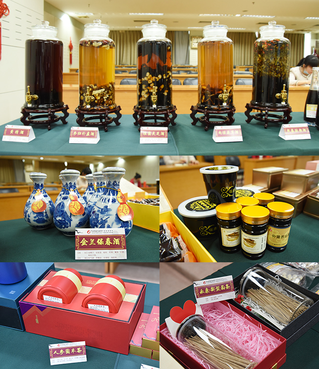 会场还设立展台,展示了近30种我院自主研发的药膳产品供与会领导、专家、代表品鉴。