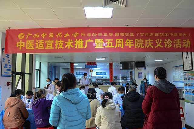 12月11日上午,院区于门诊楼一楼大厅举办了广西中医药大学附属瑞康医院田阳院区(田阳区中医医院)中医适宜技术推广培训暨五周年院庆名老中医义诊活动。此次义诊活动由老年病区、消化内科、肝胆腺体外科、脊柱外科、中医内科、妇科等方面的专家为群众进行深入细致的诊疗服务,现场讲解中医药对常见病、多发病以及自我保健的相关知识,并耐心解答市民及患者咨询的问题。