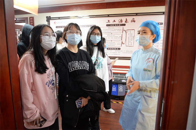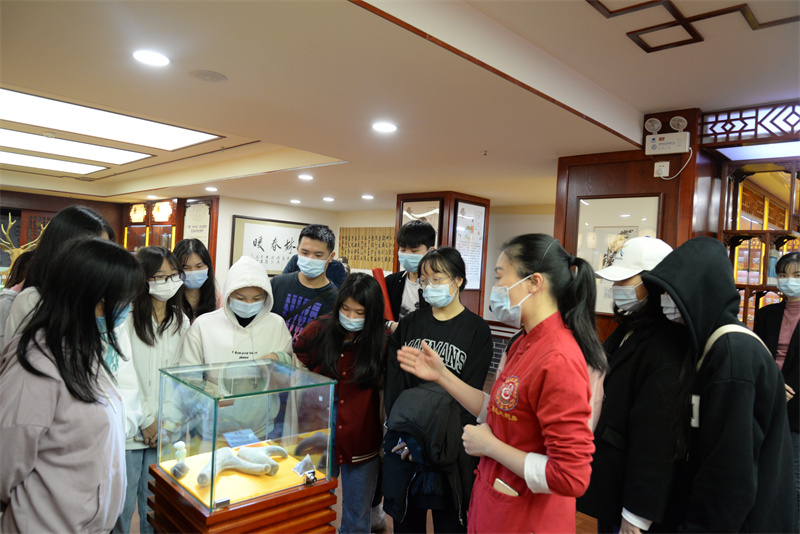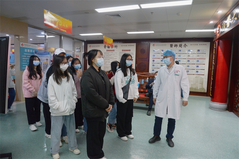 当天,学生们先后参观了国医大师馆、院史馆、治未病中心、正骨推拿理疗馆和中医药博物馆,在讲解员的引导和讲解下,体验中医药文化,感受中医药文化的独特魅力。活动中,讲解员为学生介绍了生活中常见的一些中医知识,讲解了常见中医药材的药性和价值,同学们还走进诊疗室近距离观看小儿推拿、牵引、内治法等特色中医疗法。在中医药博物馆里,同学们聆听了梅花鹿皮毛标本、名医塑像、中药材标本与饮片的详细介绍,同学们还品尝了养生药茶,感受到了中医药文化的源远流长和博大精深。