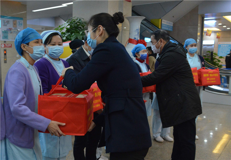为致敬一线抗疫医护人员,感谢他们为疫情防控工作作出的贡献,1月26日,广西福彩与南宁晚报工作人员共同组成的爱心送餐队来到我院,为我院一直奋战在抗疫一线的“白衣卫士”们送来60份爱心年夜饭,并向他们致以诚挚的敬意与新春的祝福。